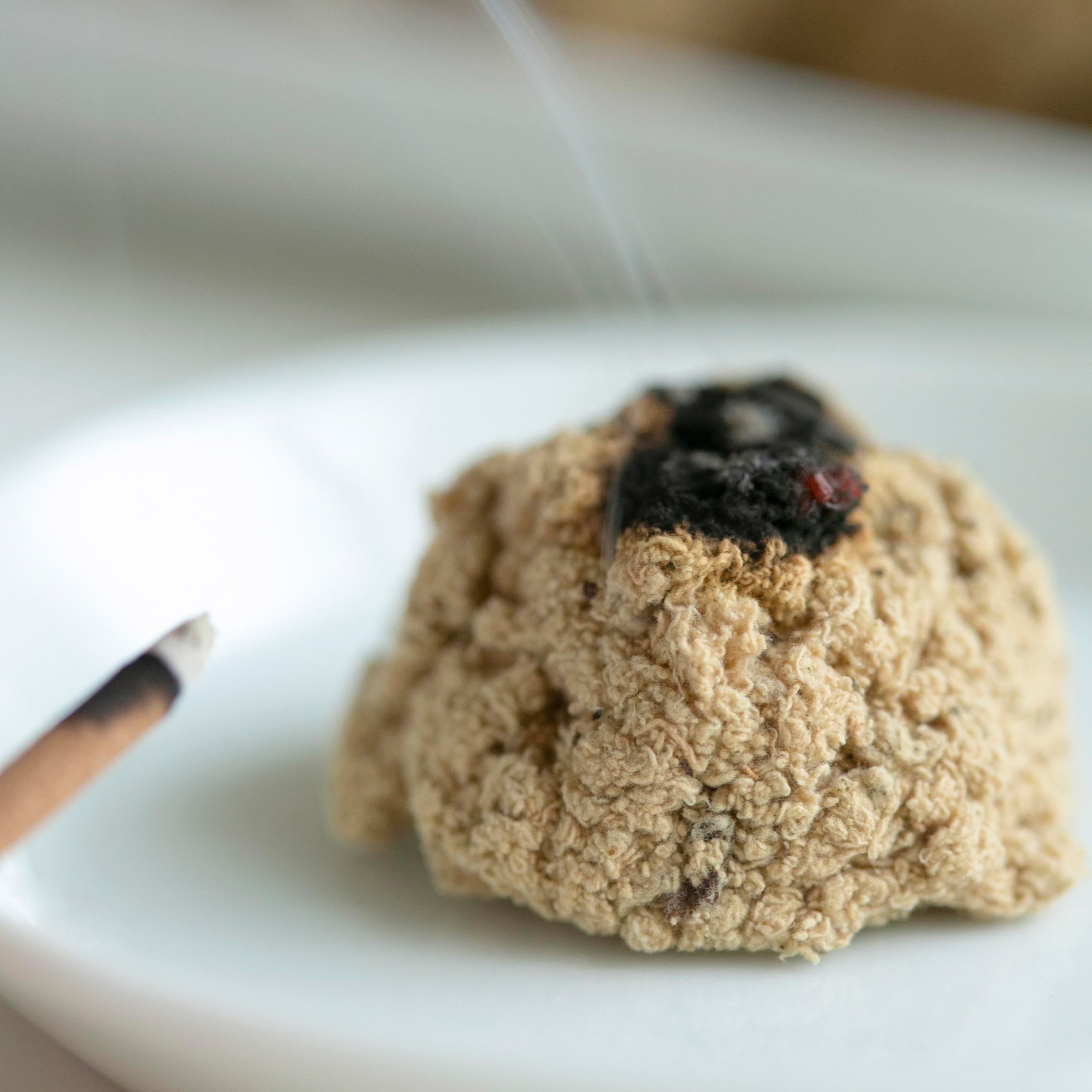 ”モグサムスビの温灸" はお皿にモグサをのせて、じっくりと温めるセルフ灸。