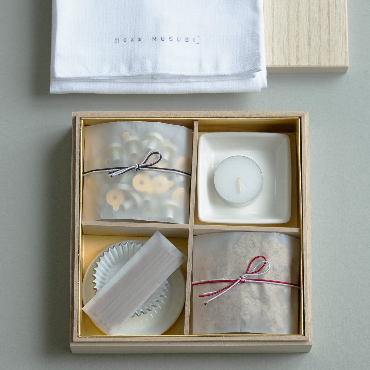このセットは必要なものが全てそろった、購入後すぐに始められるmoxa MUSUBIオリジナルのセルフお灸セットです。